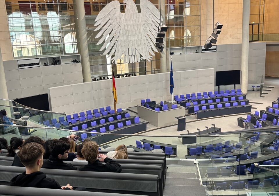 Am Mittwoch, den 11.02.26, machten sich zwei Politik Grundkurse auf den Weg zum Bundestag. Zunächst betraten diese die Besuchertribüne des Bundestages und lauschten einem kurzen Vortrag über den Alltag im Reichstag und wie es dort zur Sitzungswoche zugeht. Anschließend gab es mit dem MdB – und ehemaligen Kantianer! – Helmut Kleebank eine offene Fragerunde mit den Schülern. Nach einer überraschend kurzweiligen Stunde des Diskutierens verabschiedeten wir uns und erforschten dann die Kuppel des Reichtagsgebäudes. Damit endete der aufregende Tag im Zentrum der Deutschen Politik.
