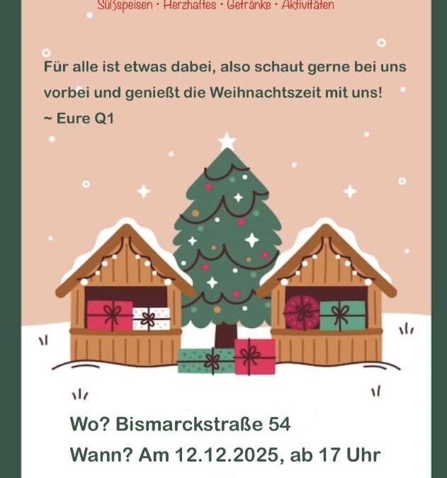 Unser 11. Jahrgang hat sich vorgenommen, das Kant in vorweihnachtliche Stimmung zu versetzen und hat daher einen Weihnachtsmarkt geplant. Jeder ist herzlich willkommen und kann bei uns gern am Freitag zwischen 17:00 und 20:00 vorbeischauen. Der 11. Jahrgang und deren Abikasse freut sich auf Gäste.