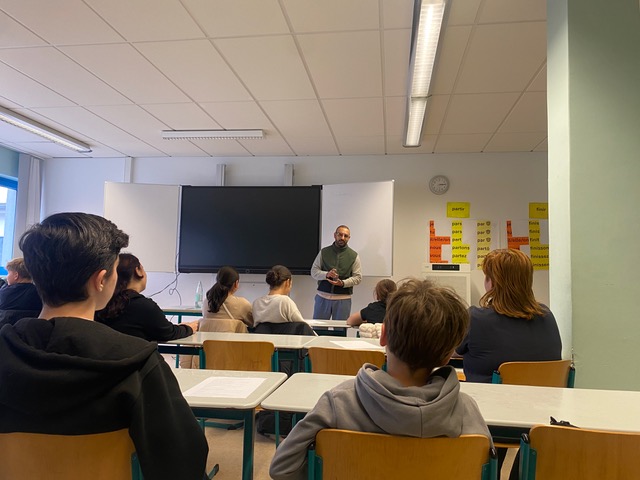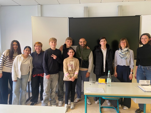 Die Schülerinnen und Schüler der Demokratie-AG durften sich am Freitag, 17. Oktober, über besonderen Besuch freuen: Kassem Taher Saleh (Bündnis 90/Die Grünen), Bundestagsabgeordneter aus Dresden, nahm sich Zeit, um mit ihnen über politische Themen und seine Arbeit im Parlament zu sprechen. In einer offenen Gesprächsrunde wurden viele Fragen gestellt und engagiert diskutiert. Die Themen reichten von der Höhe der Abgeordnetendiäten und dem Alltag als Bundestagsabgeordneter bis hin zu den Kriegen in der Ukraine und in Nahost. Dabei zeigte sich das große Interesse der Jugendlichen an demokratischen Prozessen und aktueller Politik. Kassem Taher Saleh beantwortete alle Fragen ausführlich und verständlich. Vielen Dank für die spannenden Einblicke!